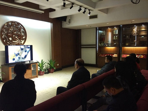 我馆人员在西汉南越王博物馆内认真观看该馆制作的视频资料
