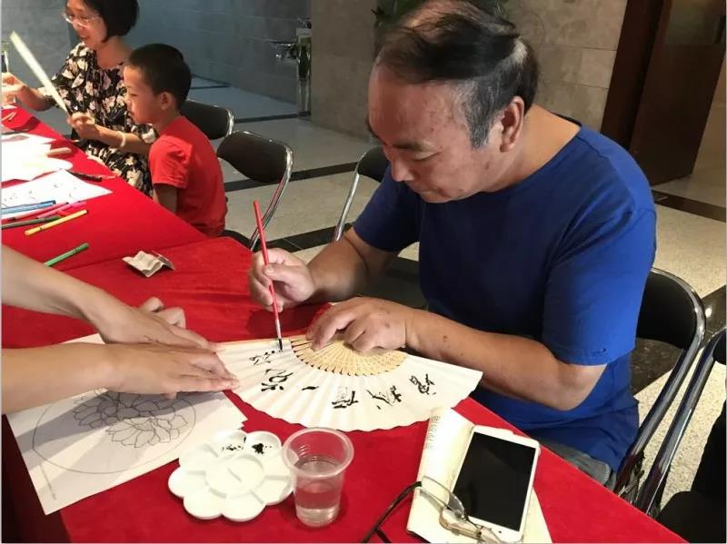 活动现场,不乏“才子佳人”,充分发挥自己的才艺技巧,制作个人专属扇子,给这个炎热暑假带来一丝丝的凉意。
