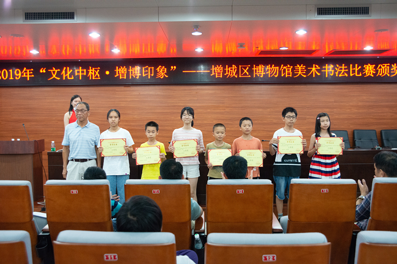 以“文化中枢· 增博印象”为主题的美术书法比赛颁奖典礼于8月9日在区博物馆举行。通过现场表彰、作品展示的方式,加深公众对博物馆作为文化中枢的理解与认同。本次活动部分获奖作品,将在城市馆3楼作为期一个月的临展,免费对市民开放,欢迎广大市民前往参观。