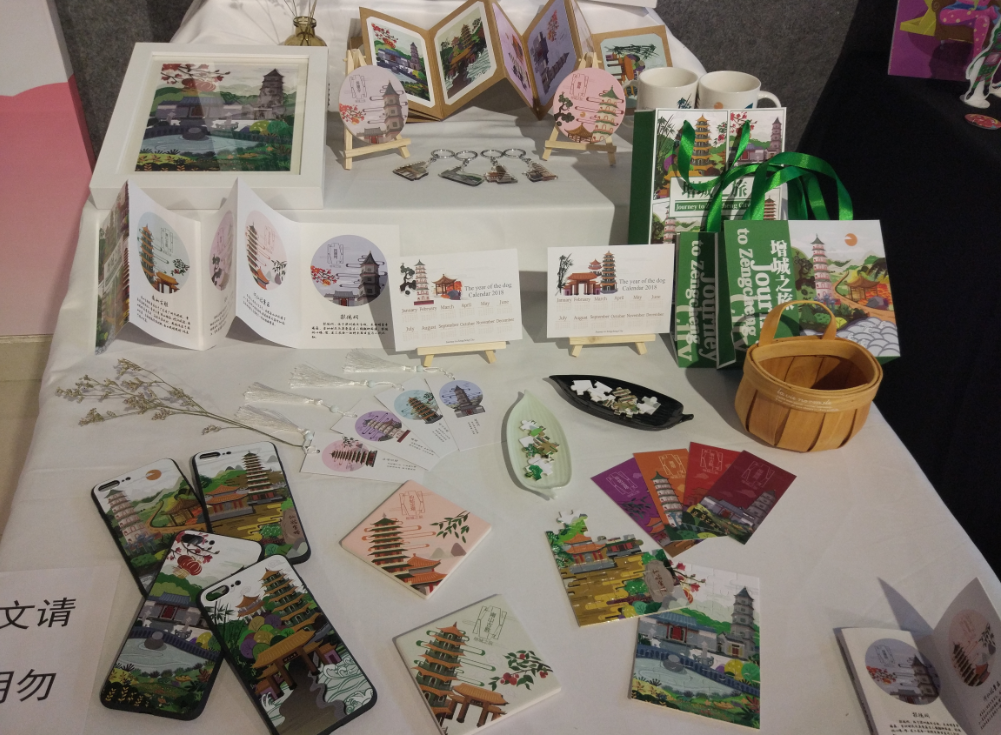 展览的作品中,有不少作品主要围绕增城的史历文化和名胜古迹等,设计出形式多样的环境设计作品和产品设计作品。通过对增城一些景点建筑和特点的提炼,以插画的形式加以灵动的配色与复古的风格,让每一处景点的设计图都有着复古风情的浓郁又不失现代的清新时尚的美感。将设计的图案转化成杯子、画框、明信片等纪念品,甚至是我们的日常用品,时尚、实用、有辨识度、有代表性的效果。将增城名胜古迹的严肃与神秘变得更加亲和与有趣,更被大众所喜爱和接受这些文化,领略增城的别具一格的美。