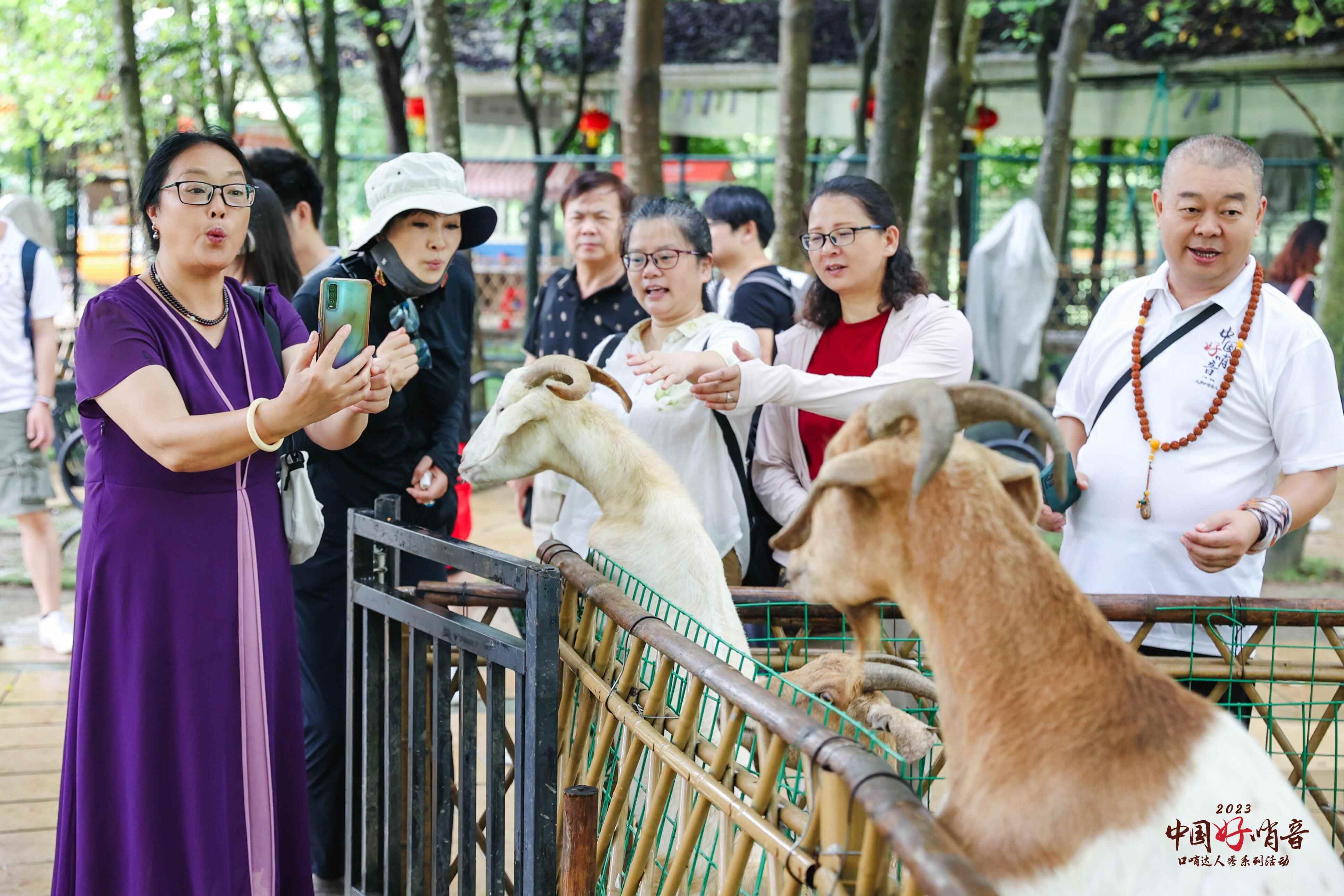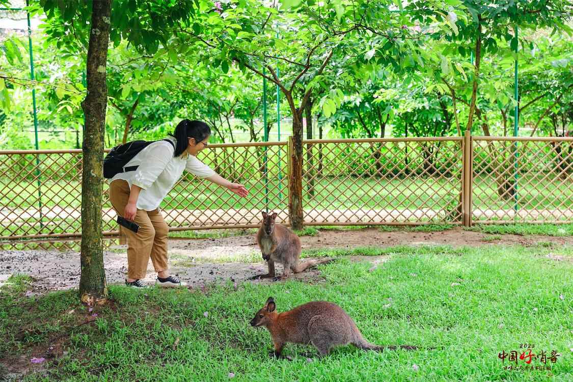 这群“金牌声优”模仿能力极强,波尔山羊、矮马、袋鼠、鸸鹋、孔雀等动物的叫声一学就会,吸引动物们上前互动,气氛欢乐。