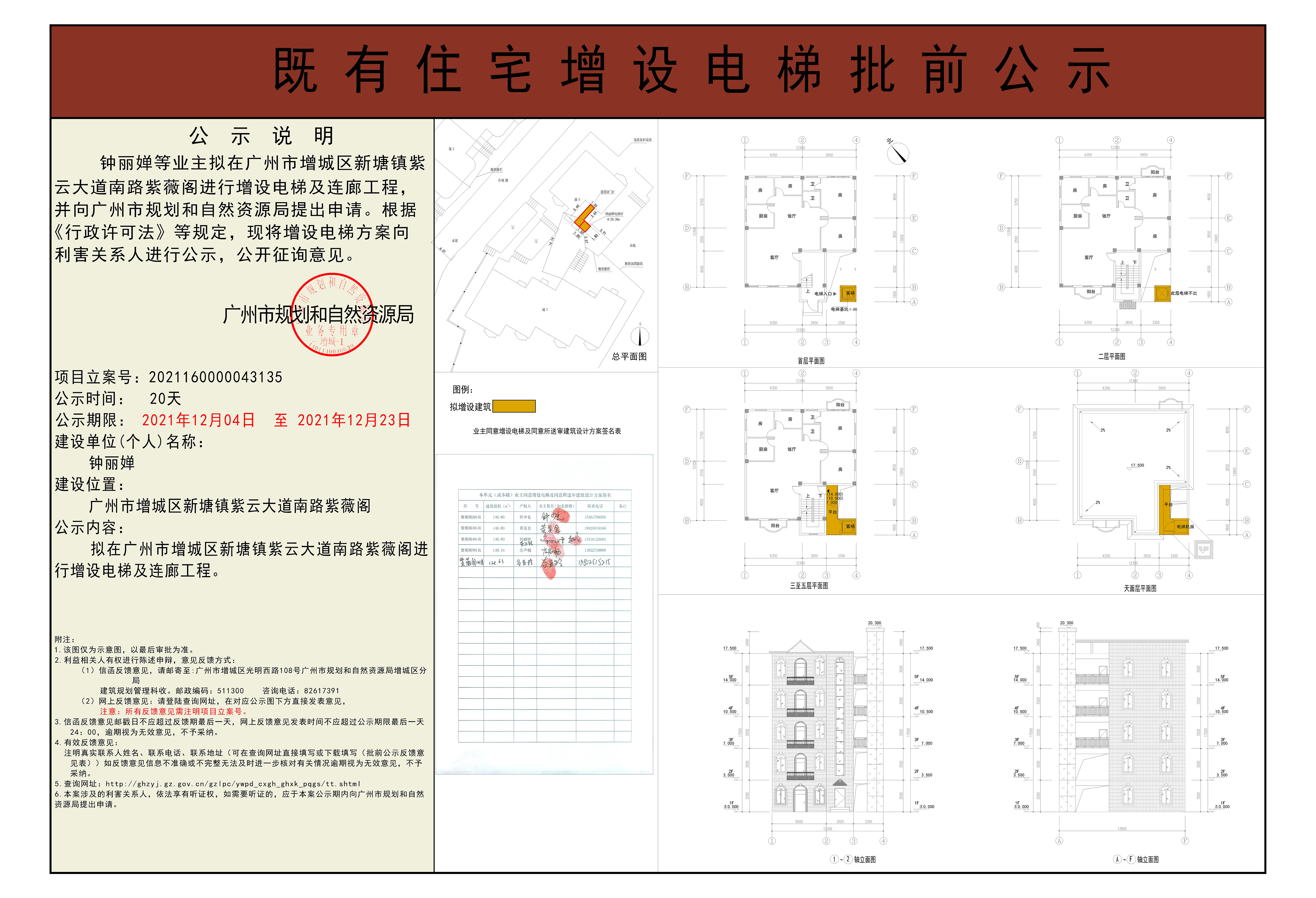 既有住宅加装电梯(快三官网 新塘镇紫云大道南路紫薇阁)批前公示