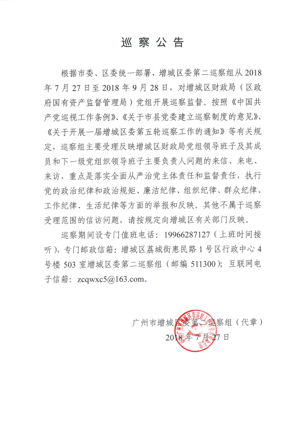 巡察公告(区财政局)