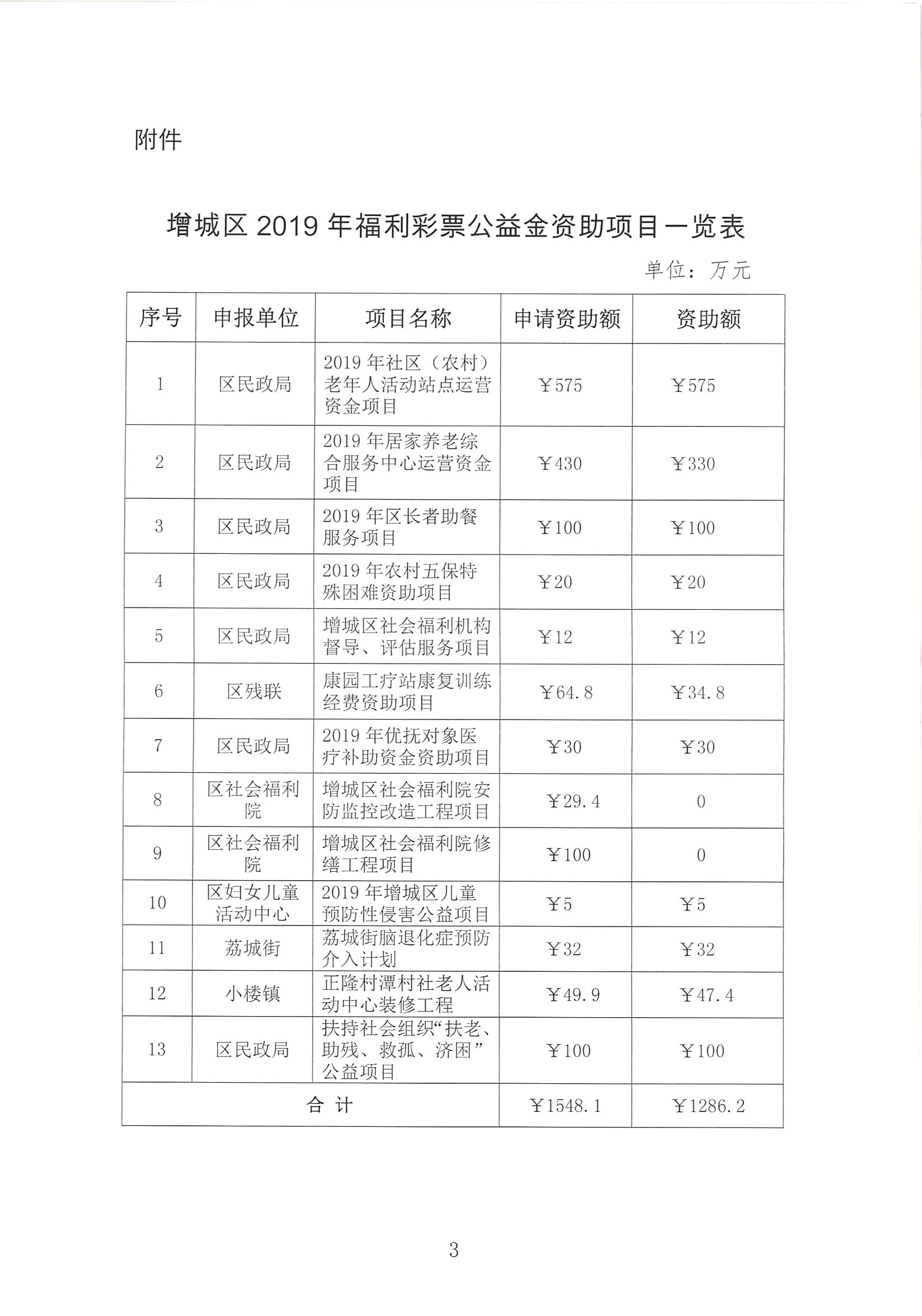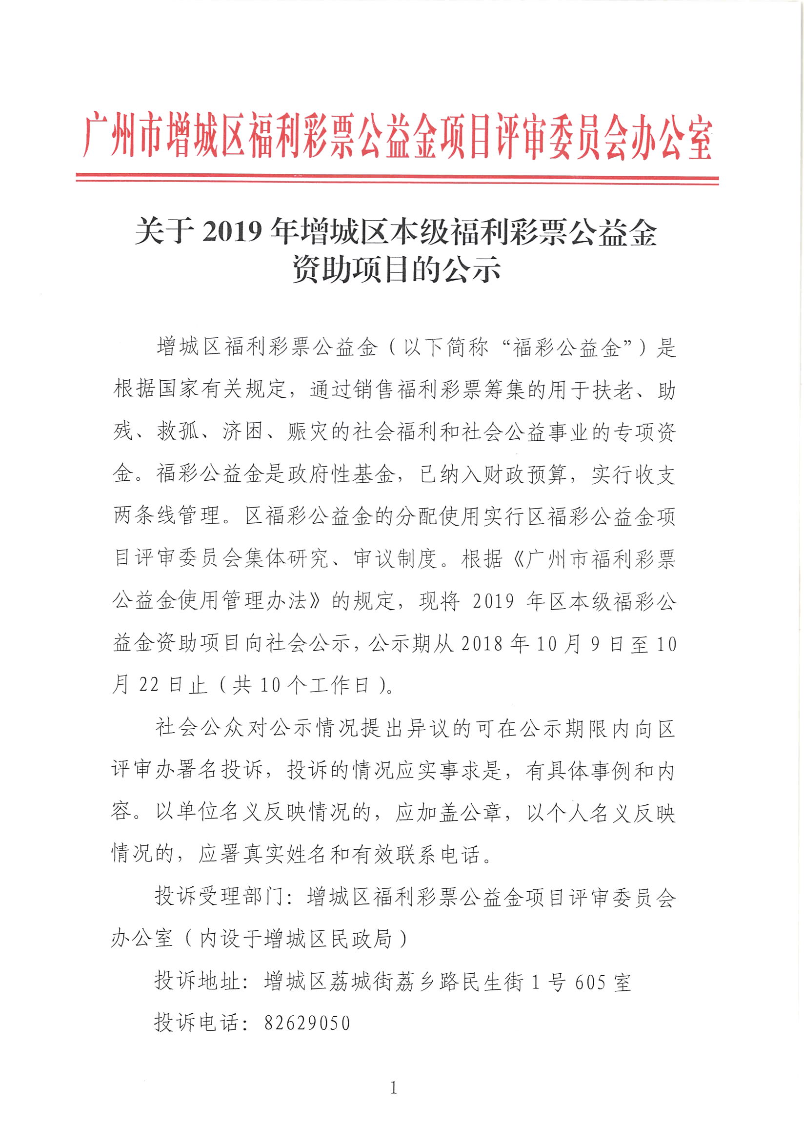 关于2019年快三官网 本级福利彩票公益金资助项目的公示