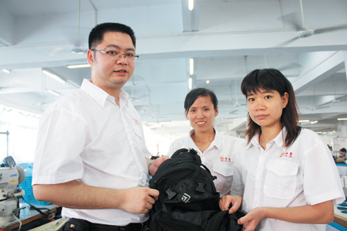 从“入行”到当上主管,戴益军只用了两年时间。回忆起当年这段经历,戴益军认为主要缘于“谨慎、好学”,“做手袋开发不是高科技,只要细心、以客为尊,遇到问题耐心研究,及时改进产品质量,满足客户的需求就可以了。”