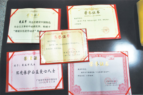 而戴益军本人也被评为增城市先进劳动者、劳动就业先进个人,中新镇首届“十大优秀外来青年”、2011年度“优秀共产党员”,还被广东省环境保护基金会授予“环境保护公益爱心人士”。
