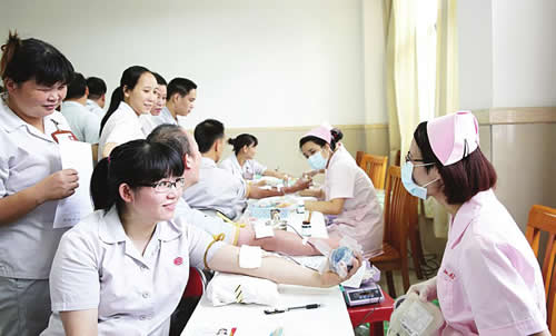 员工踊跃参加无偿献血。