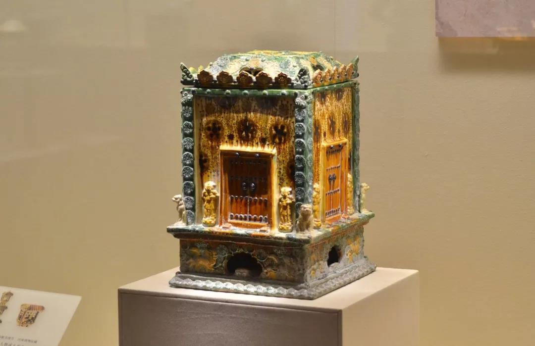 在西汉南越王博物馆的《中国屋檐下——中国古代建筑明器展》第二单元展厅中,有这么一件文物,它叫“三彩琉璃舍利匣”,1966年河南新密法海寺地宫出土,现藏于河南博物院。