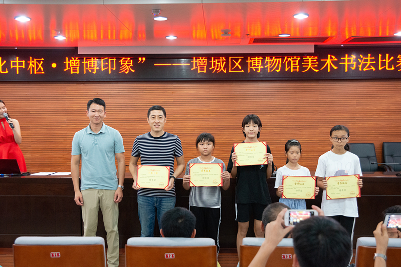以“文化中枢· 增博印象”为主题的美术书法比赛颁奖典礼于8月9日在区博物馆举行。通过现场表彰、作品展示的方式,加深公众对博物馆作为文化中枢的理解与认同。本次活动部分获奖作品,将在城市馆3楼作为期一个月的临展,免费对市民开放,欢迎广大市民前往参观。