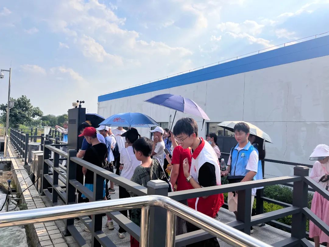 紧接着,现场工作人员带领参与者们实地参观了净水厂的各个处理环节。从一级处理到二级处理(生化系统),再到二沉池、高效澄清池,最后经过紫外消毒及巴氏计量槽,参与者们亲眼目睹了污水由浊变清的净化全过程,对水资源的循环利用有了更直观的认识。
